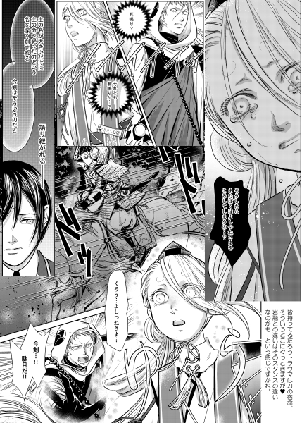 *岩融の記憶の中では、昔の今剣の姿はもうちょっと大きかった…?と思っていたのだが…再会したら小さくなっていた? 義経自刃の際に使われた刀である今剣には過去の悲しみが今も癒えないのだと岩融は知る。